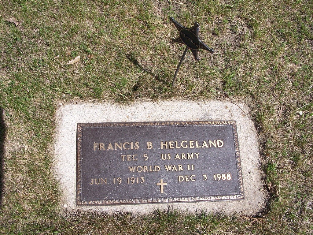Helgeland Veteran Memorial, Helgeland, Francis B. TEC 5 US ARMY WWII